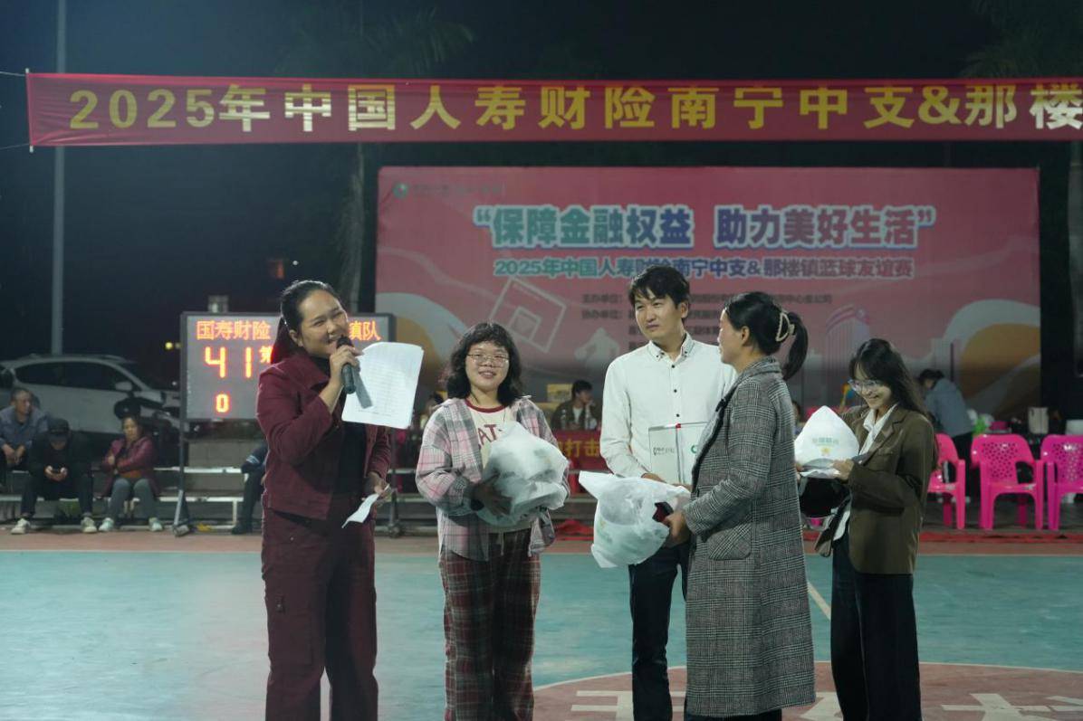 11月6日,那楼镇三凝广场篮球场灯火通明,欢呼声此起彼伏。一场以“保障金融权益 助力美好生活”为主题的篮球友谊赛盛事在这里火热开赛,吸引了众多居民驻足观看。此次活动由中国人寿财险南宁中支联合南宁市邕宁区那楼镇人民政府举办,将体育竞技与金融安全宣传相结合,通过这种寓教于乐的形式,让广大市民在运动的激情与欢笑的氛围中汲取金融知识、筑牢防骗意识。